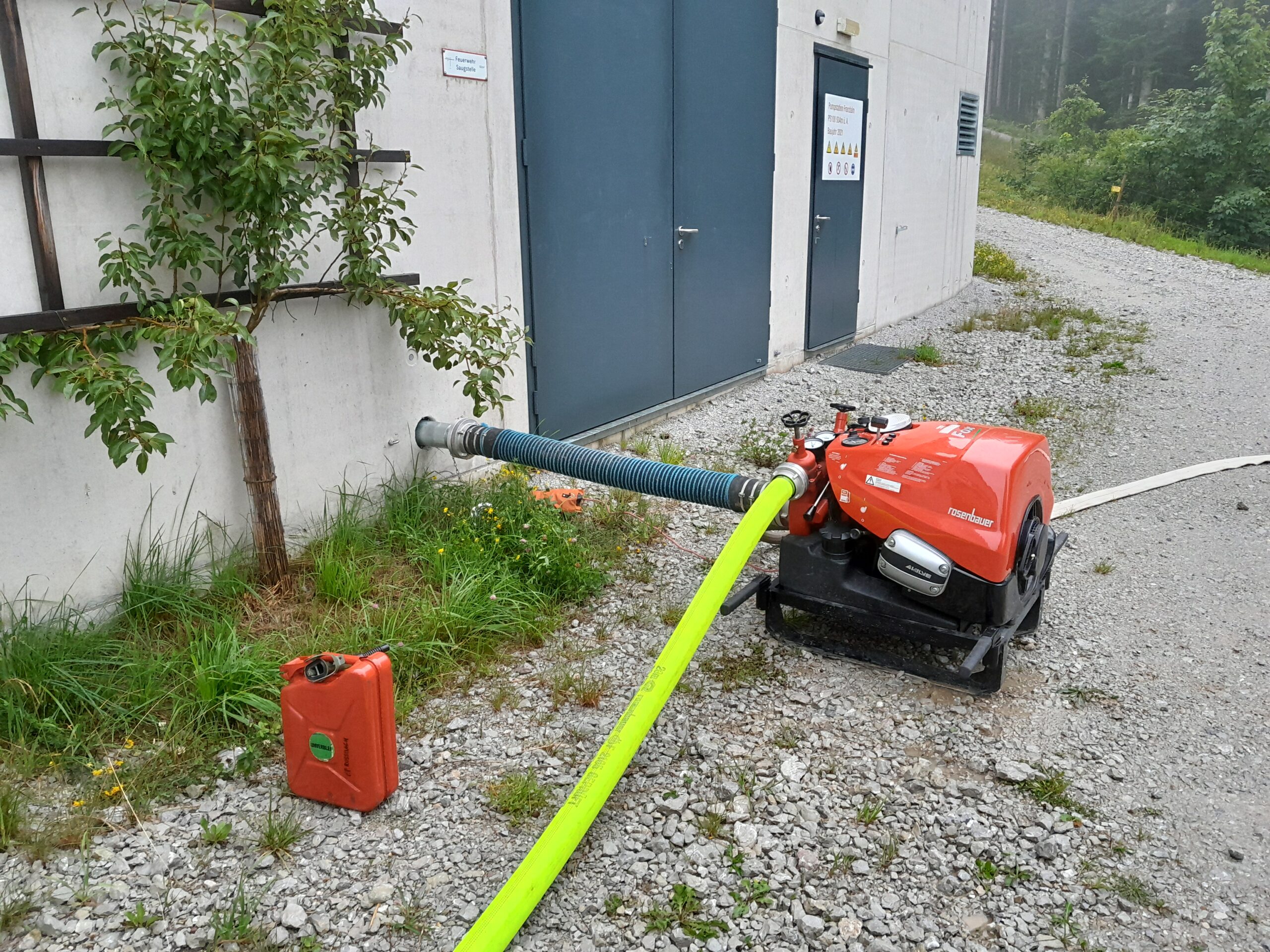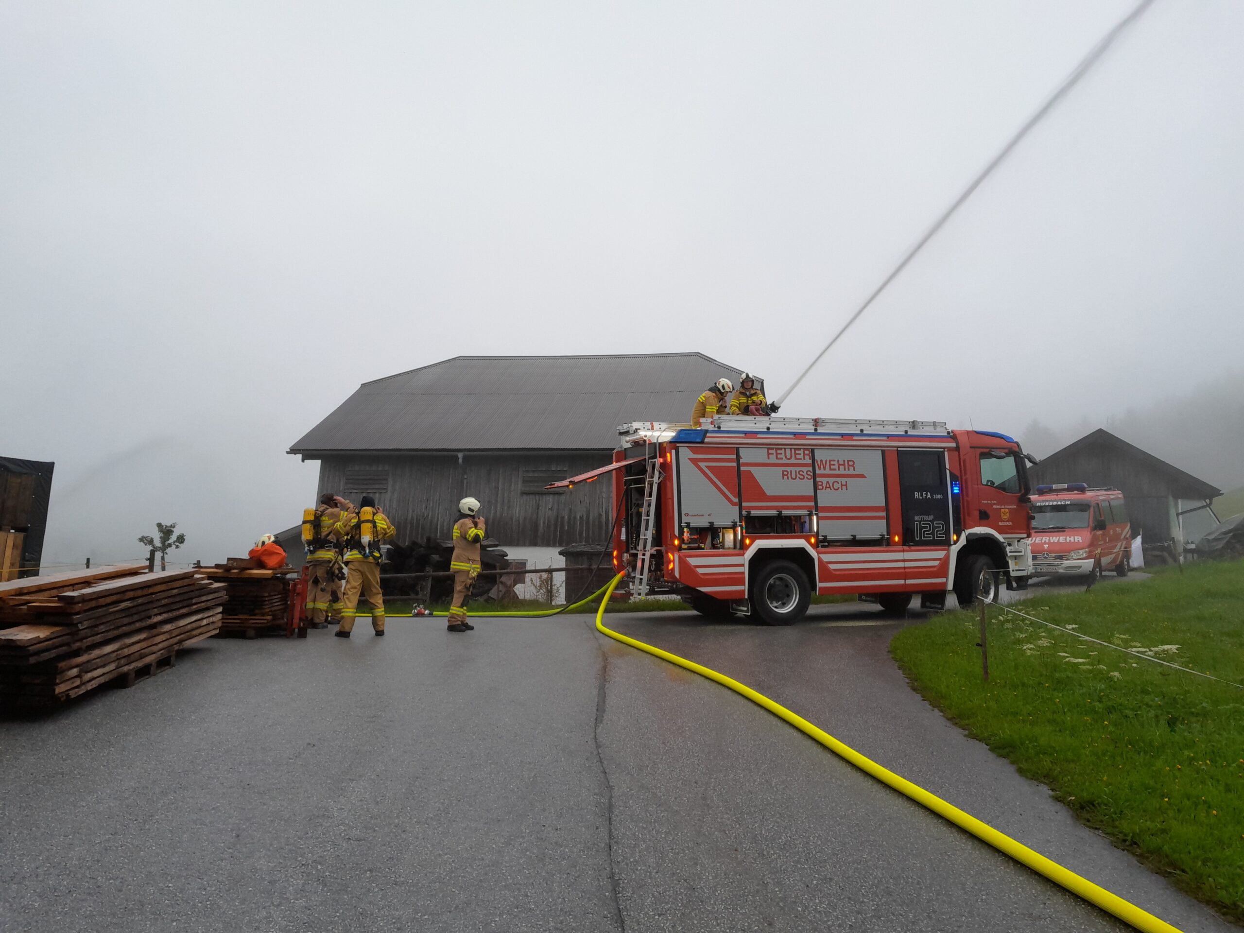 Nach eintreffen des Übungsleiters an der Übungsadresse, ließ dieser sofort einen Atemschutztrupp zur Personenrettung und Brandbekämpfung ausrüsten. Zeitgleich wurde ein C-Hohlstrahlrohr zur Brandbekämpfung in Betrieb genommen. Die Mannschaft des Löschfahrzeuges baute die Saugstelle bei der Wasserentnahmestelle bei der Pumpanlage der Russbacher Hornbahnen auf und verlegte die Zubringerleitung zum Rüstlöschfahrzeug. Der Atemschutzrettungstrupp wurde durch die Mannschaft des Löschfahrzeuges gestellt. Nach der endrauchung des Gebäudes mit dem Lüfter konnte Wasserhalt gegeben werden und die Übungsstelle zusammen geräumt werden. Nach dem Zusammenräumen und herstellen der Einsatzbereitschaft wurde noch eine Nachbesprechung abgehalten, um auf eventuelle Gefahren aufmerksam zu machen.