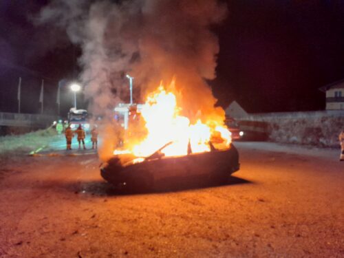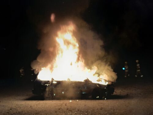 Bei dieser Übung galt es einen Fahrzeugbrand zu bekämpfen. Um zu veranschaulichen, wie lange ein PKW bis zum Vollbrand braucht, wurde er unter Beobachtung der gesamten Mannschaft angezündet. Anschließend wurde das Fahrzeug von einem Atemschutztrupp mit dem Hochdruckholstrahlrohr gelöscht, wodurch sich dieses als besonders Wirksam zeigte. Zusätzlich wurde eine Saugstelle errichtet und eine Zubringerleitung zum RLF gelegt. Nach dem löschen des Brandes, wurde das Fahrzeug mit der Wärmebildkamera auf Glutnester kontrolliert.